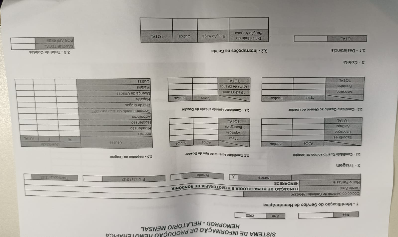 Após a emissão de relatórios estatísticos (mensais) para geração de indicadores para a FHEMERON, utilizados para uma melhora constante dos processos dos setores. O mesmo é reportado ao Boletim de Produção Hemoterápica, o HEMOPROD, contendo campos a serem preenchido com os dados de produção mensal de sangue pelos Serviços de Hemoterapia e enviados para a Vigilância Sanitária (VISA) local para fins de consolidação, posterior envio e geração dos dados nacionais da ANVISA.